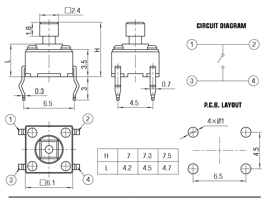 | 行程 | 0.25mm±0.1mm |
